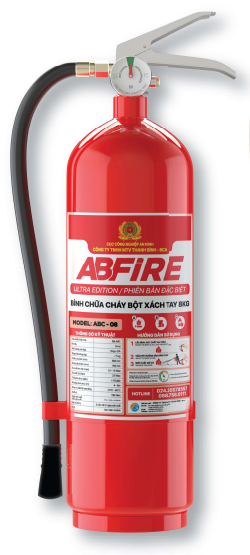 Bình chữa cháy xách tay ABFIRE dạng bột 8kg được thiết kế có hình trụ và sử dụng thép đúc chịu áp lực cao. Sản phẩm được sản xuất, kiểm định và đóng gói đạt tiêu chuẩn Việt Nam